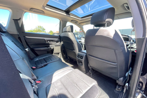 Smart touchscreen, phone connectivity, advanced driver assistance, wireless charging pad, panoramic glass roof, leather electric seats.